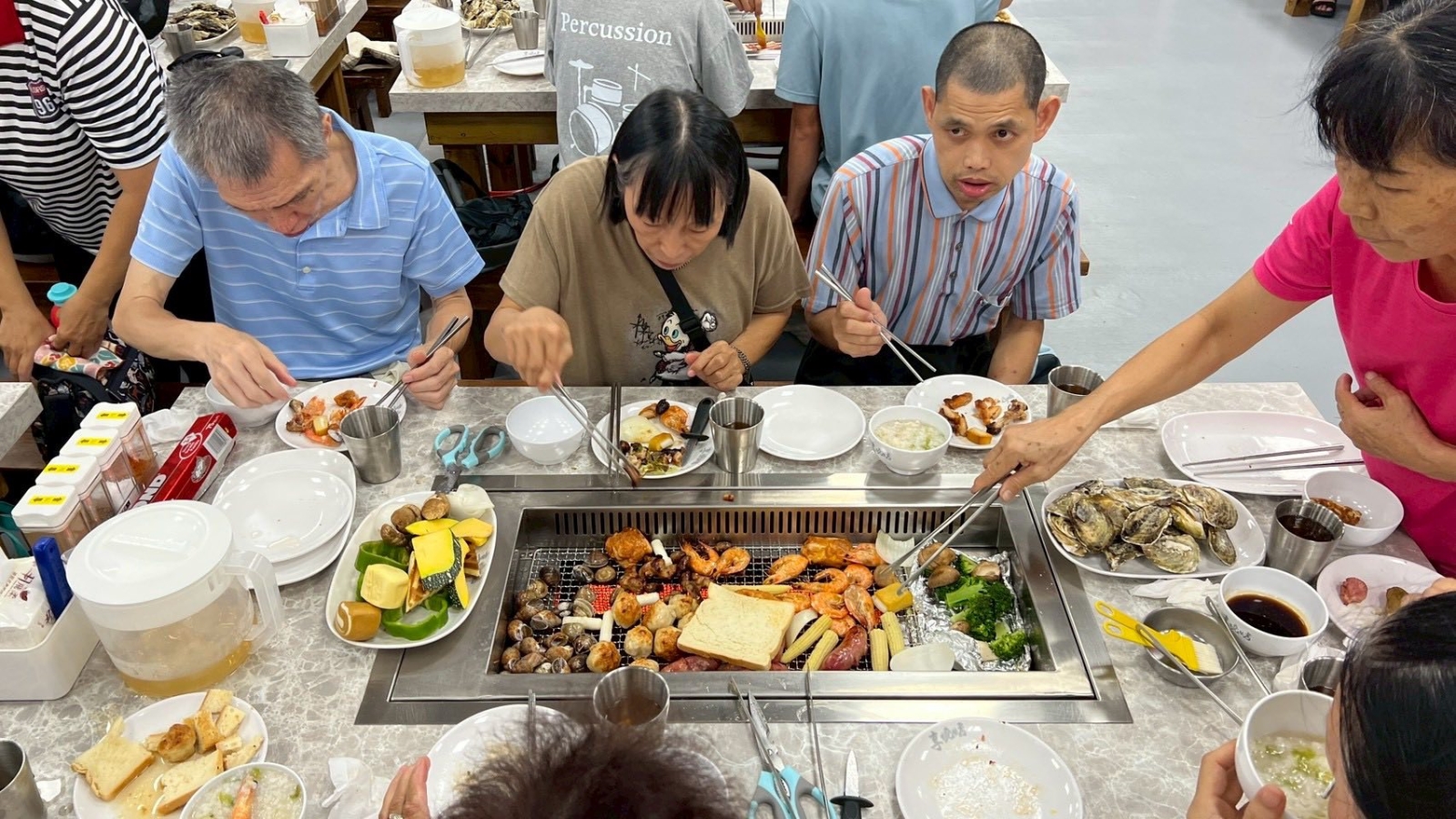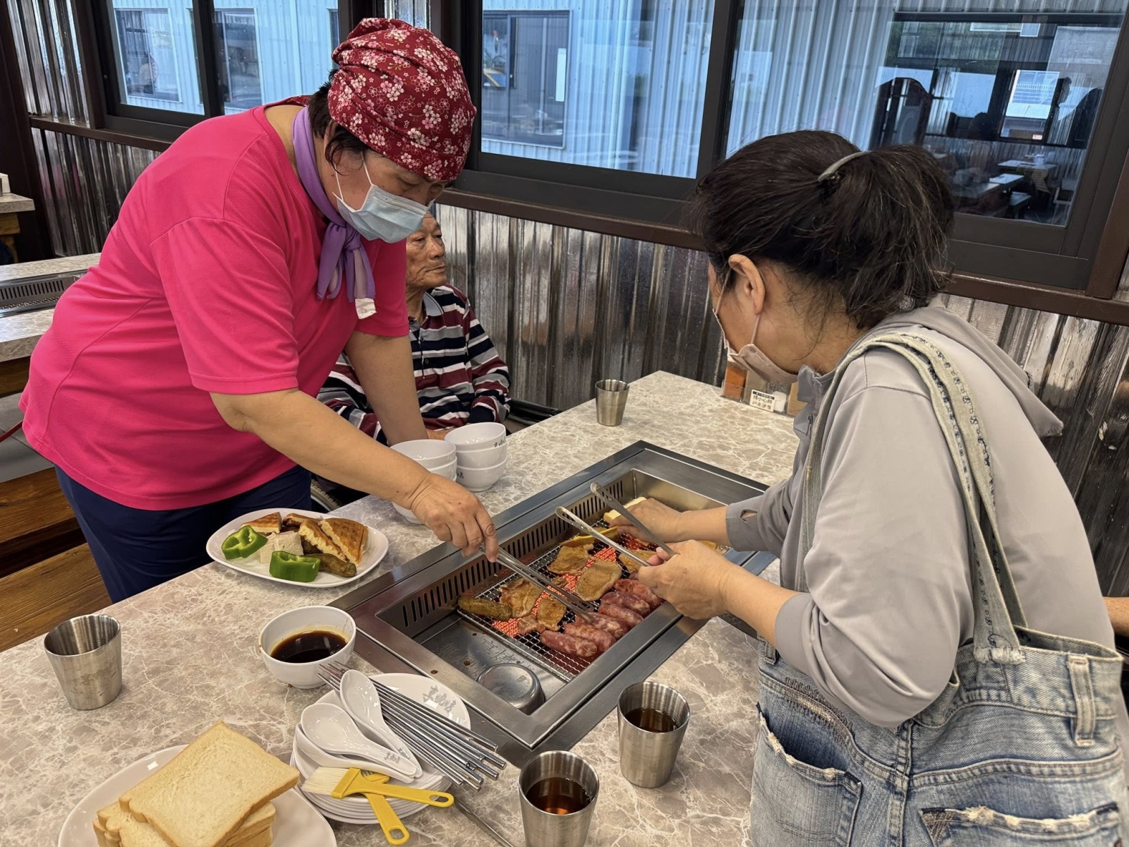 家主任特別帶領院民前往燒烤店,同享烤肉樂趣!在香氣四溢的烤盤前,長輩們開心動手翻烤、聊天笑聲不斷,現場氣氛溫馨又熱鬧。