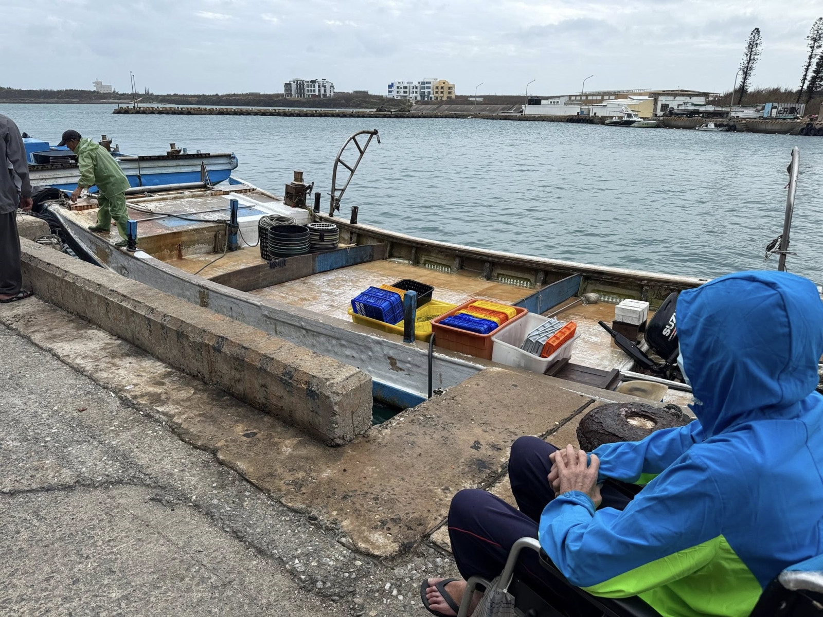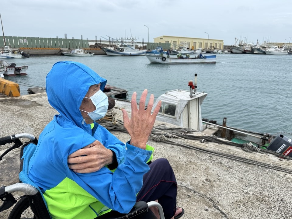 當他望向鎖港岸邊一艘艘平板漁船,熟悉的海風、海味和回憶湧上心頭,