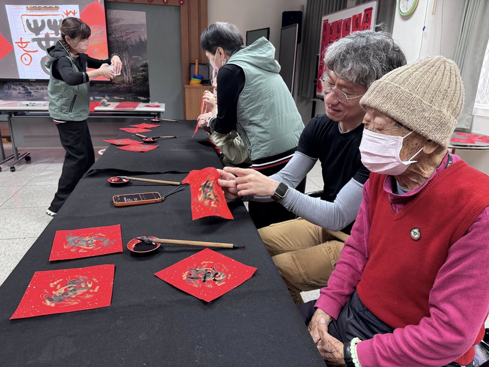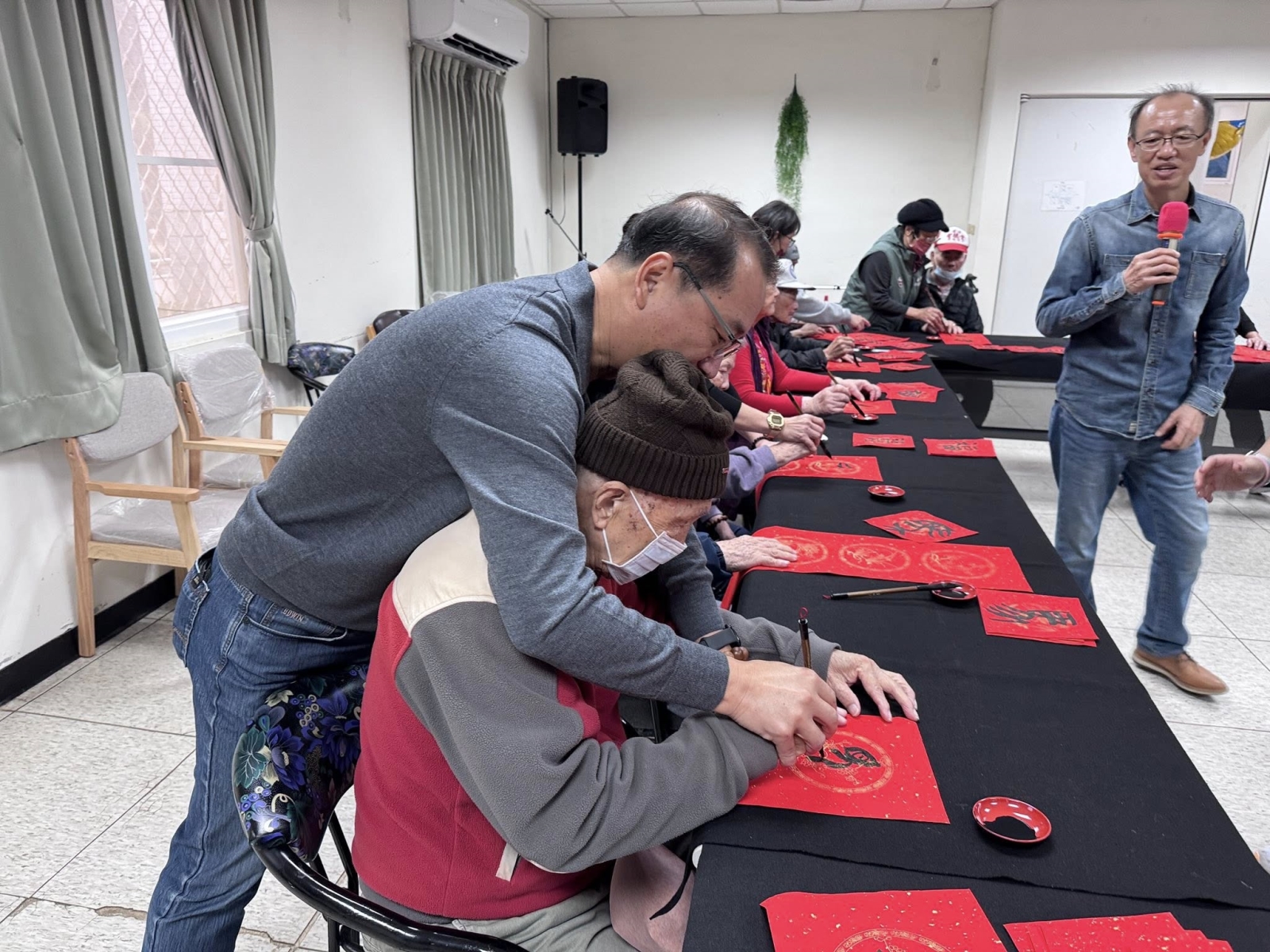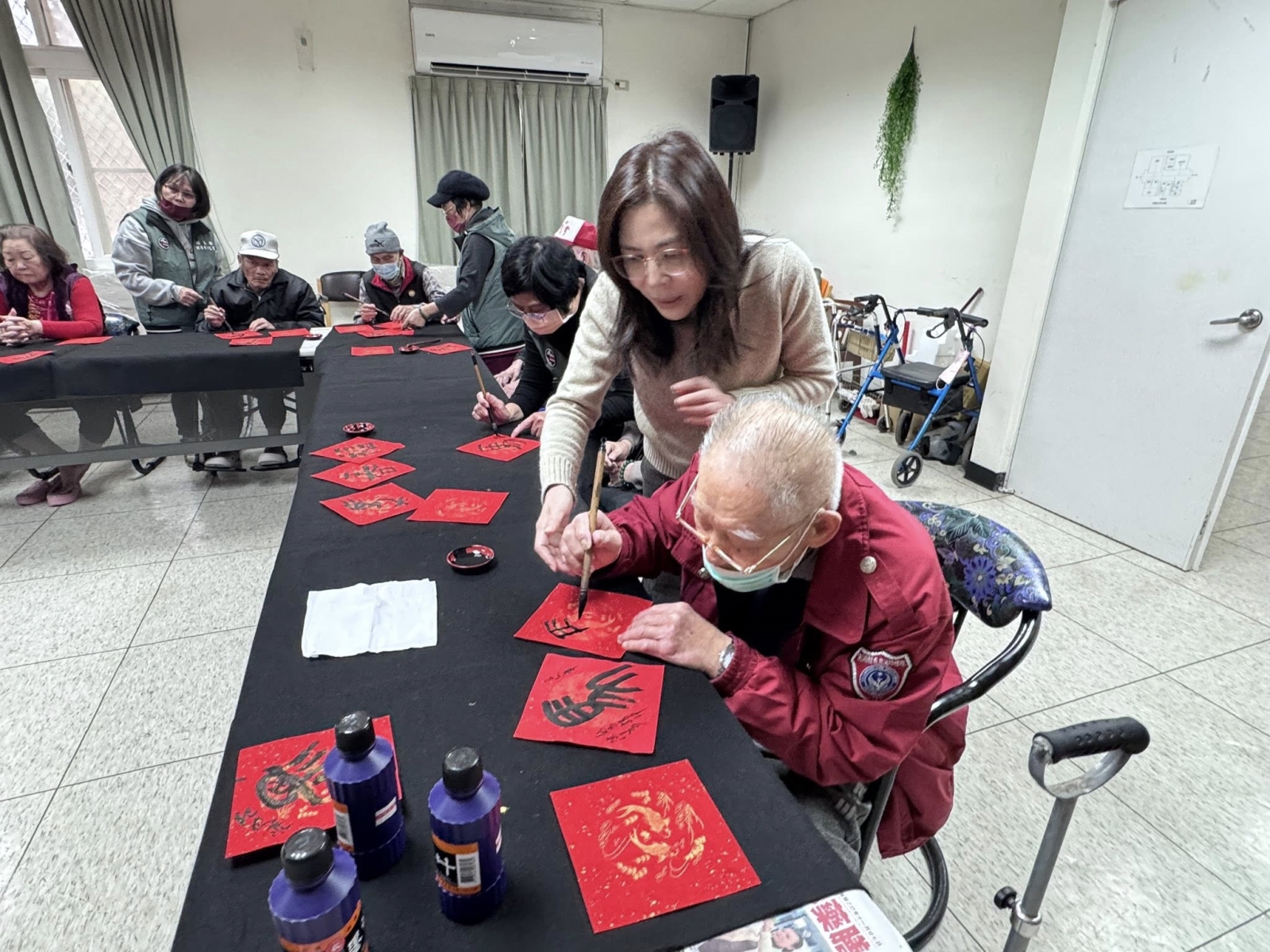主任王語莉也親自下場揮毫,與長輩一同感受書法的溫度,現場氣氛溫馨感人。透過揮毫活動,不僅傳承傳統文化,也讓長輩感受到關懷與陪伴,祝福大家新的一年馬年行大運、平安健康、福氣滿滿。