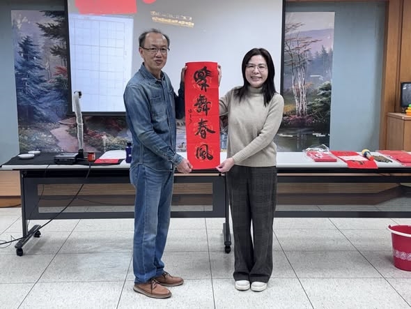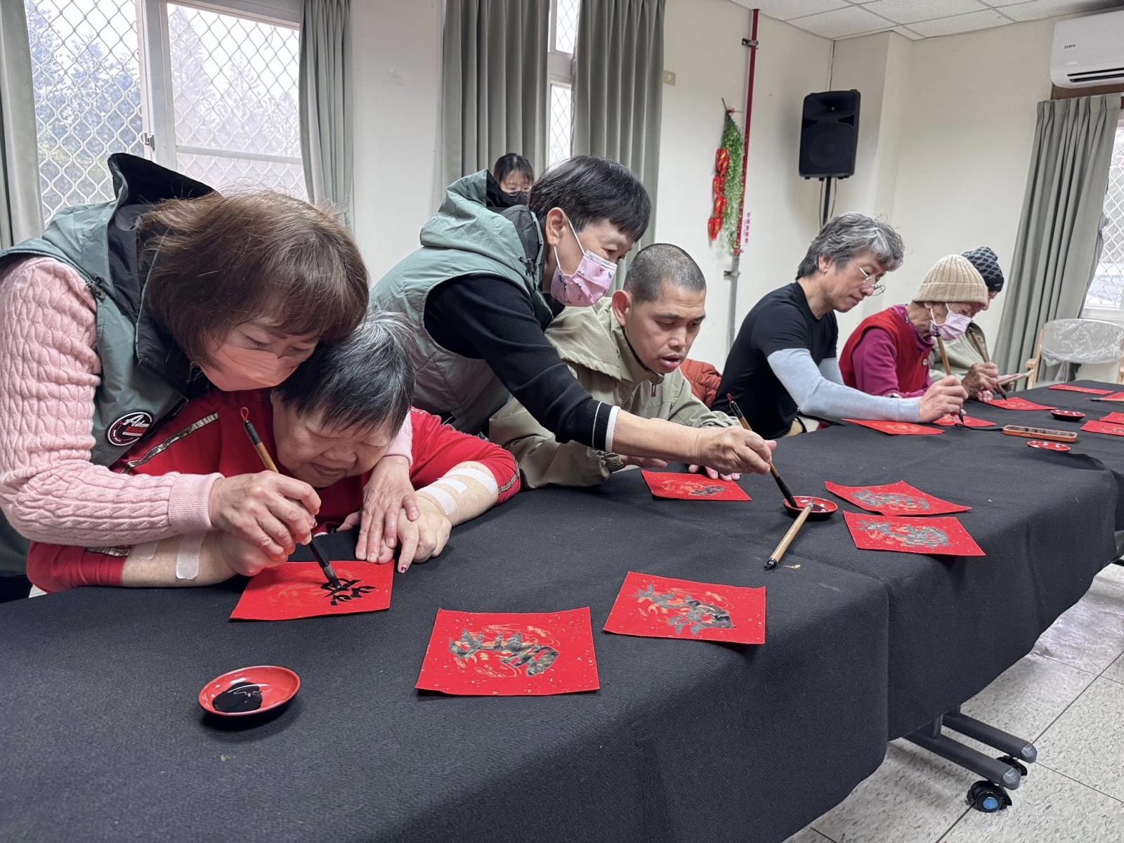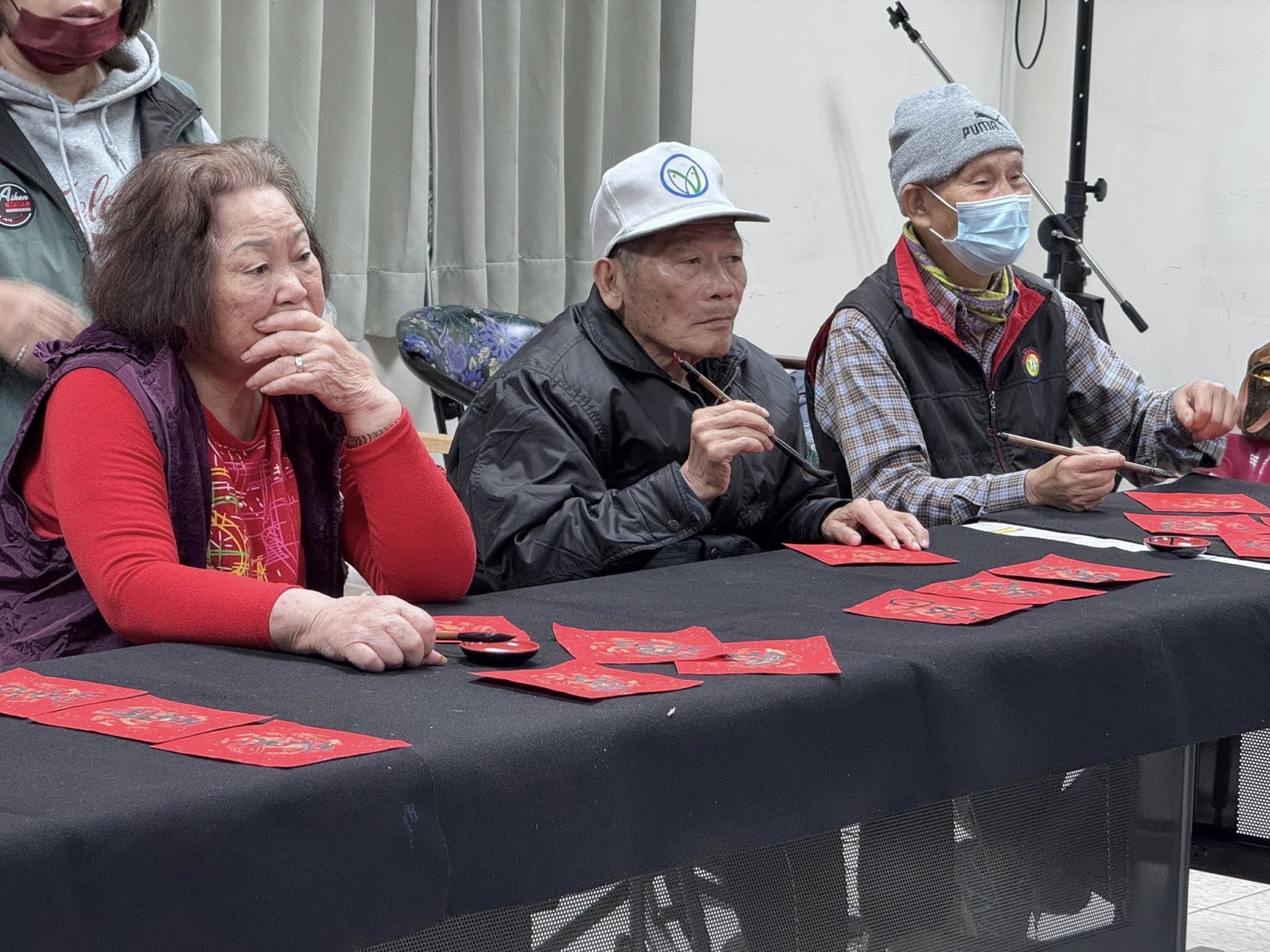 主任王語莉也親自下場揮毫,與長輩一同感受書法的溫度,現場氣氛溫馨感人。透過揮毫活動,不僅傳承傳統文化,也讓長輩感受到關懷與陪伴,祝福大家新的一年馬年行大運、平安健康、福氣滿滿。