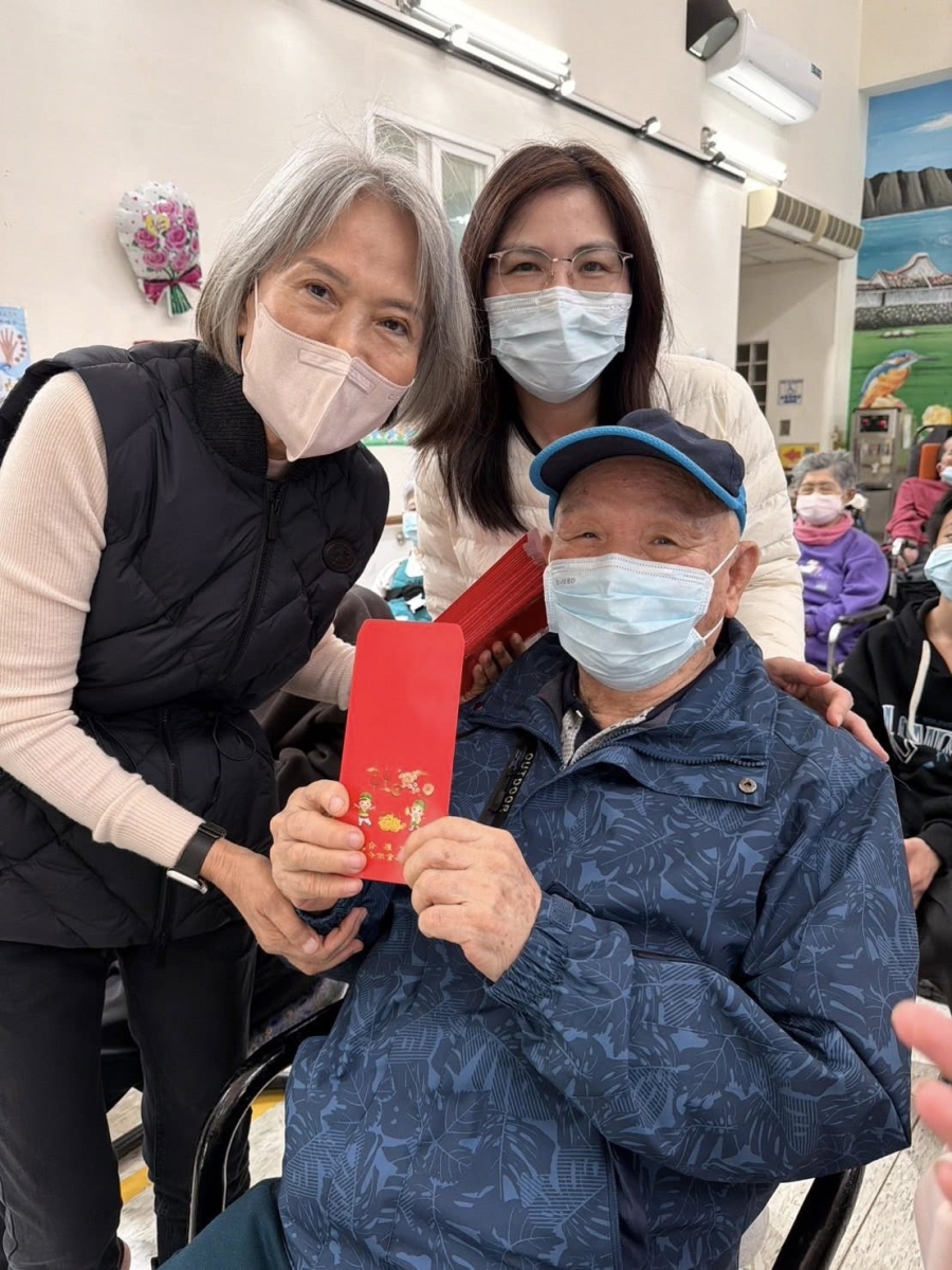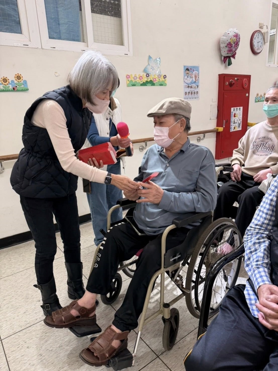 在樂聲相伴下,與主任一起為長輩遞上春節紅包,親切關懷每位長輩,現場笑聲與祝福聲此起彼落,讓除夕夜更添暖意。音樂傳情、紅包傳愛,在團圓時刻讓長輩感受到滿滿的關懷與幸福。