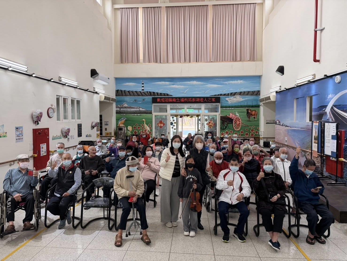 今日老議長劉陳昭玲親臨澎老,與長輩們一起用音樂迎接新年,特別邀請其孫女溫柔演奏小提琴,用悠揚的琴聲在為長輩獻上最真摯的祝福與陪伴。